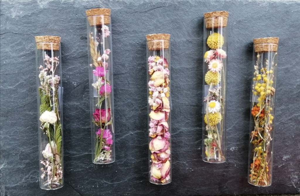 Une petite fiole remplie de fleurs séchées. A offrir ou à garder, une petite touche florale garantie !